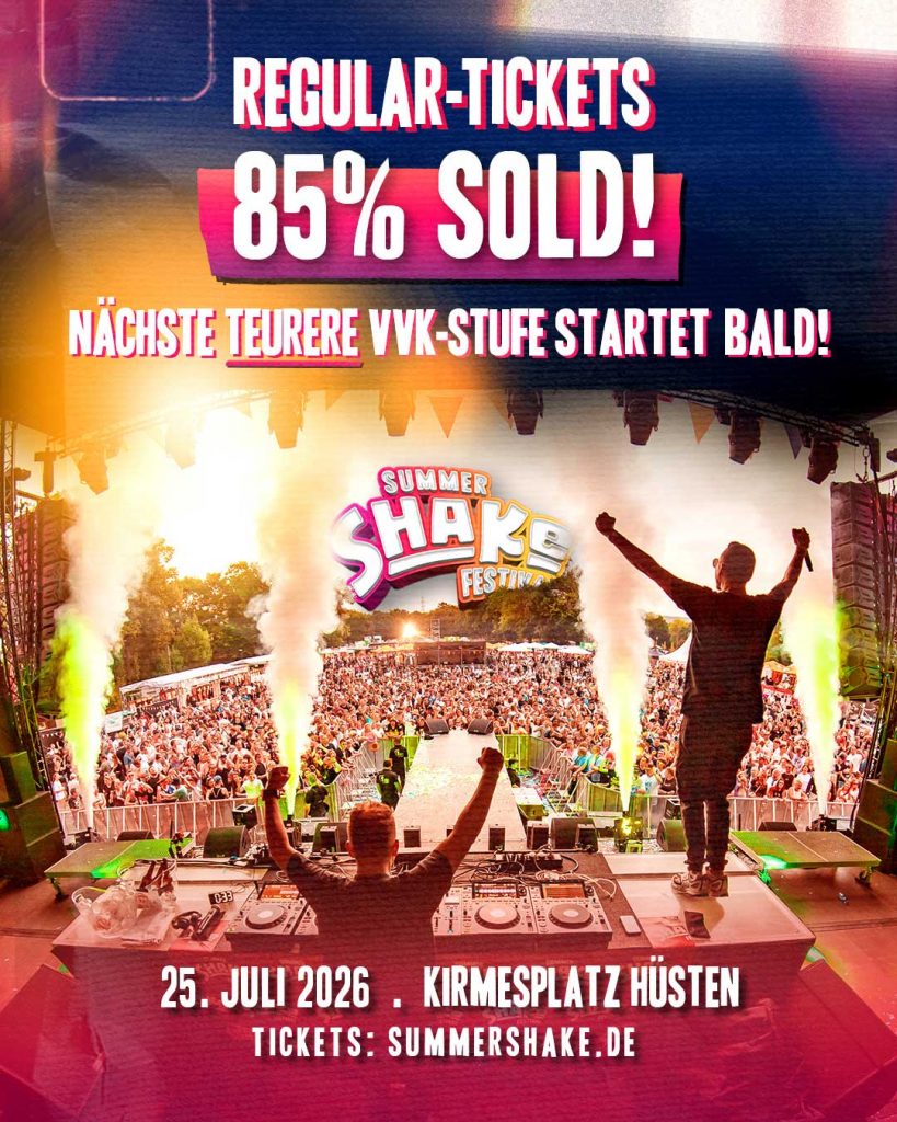Summer Shake Festival 2025? CHECK! Es war einfach grandios und wir gehen direkt wieder rein! Summer Shake Festival 2026 am 25. Juli wieder auf dem Kirmesplatz Arnsberg-Hüsten!