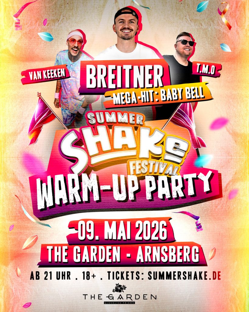 Summer Shake Festival 2026 am 25. Juli wieder auf dem Kirmesplatz Arnsberg-Hüsten! Hier findet ihr alle Infos zum Festival! Ihr habt Fragen? Checkt unseren FAQ!